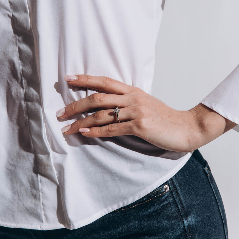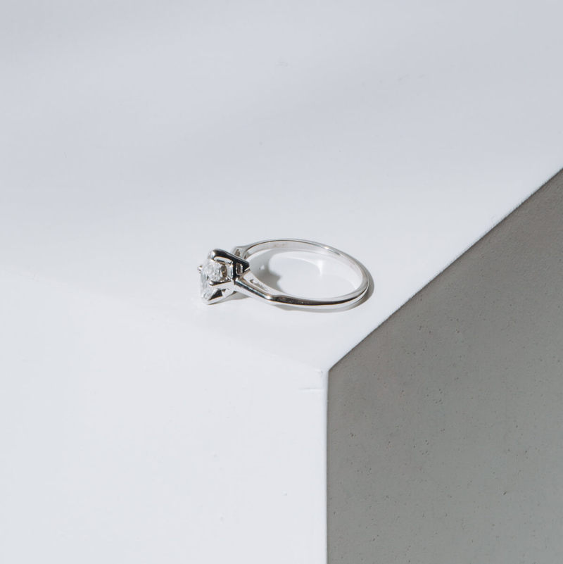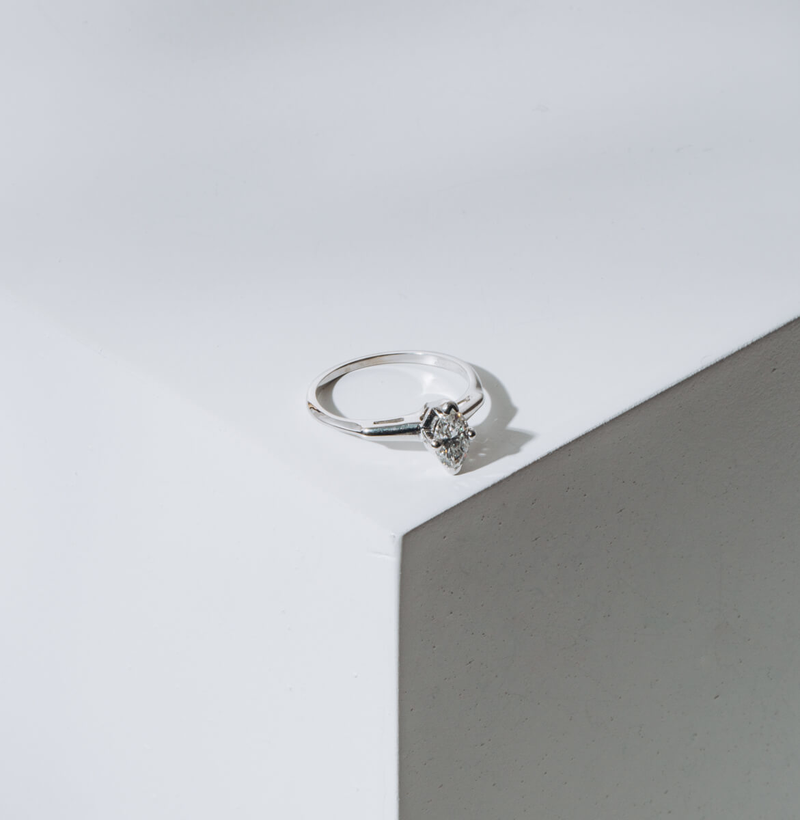 The marquise diamond is said to have royal connections in the 18th century. This marquise is set beautifully and will look amazing against a diamond wedding band or a plain polished band.