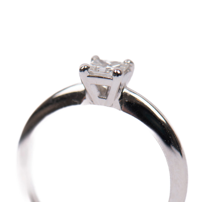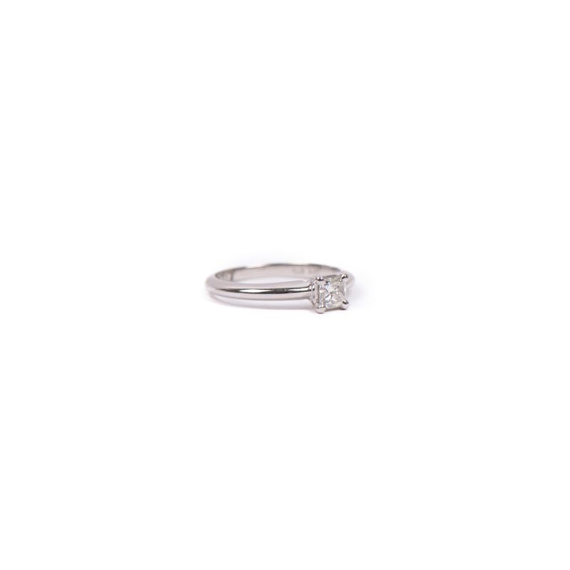 - Main Stone: Diamond, Total Weight; 0.36 Carats, Clarity; Internally Flawless, Color; E, Shape; Square Modified Brilliant