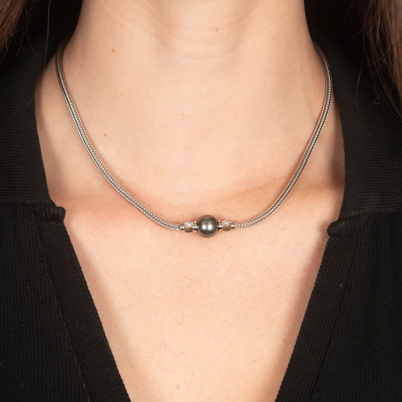 - Main Stone: Black South Sea Pearl (Size; 11 mm)