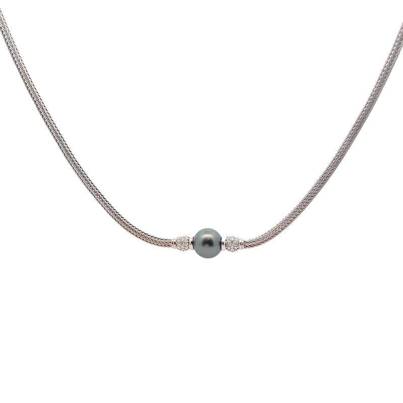 Pre-Owned Mikimoto Black South Sea Pearl and Diamond Necklace