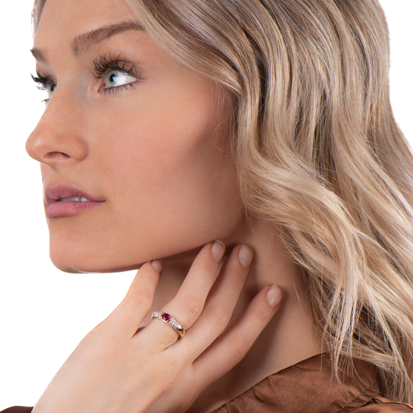 - Secondary Stones: Diamond (Total Weight; 38 = 0.45* Carats, Clarity; VS, Color; G to H, Shape; Round Brilliant)