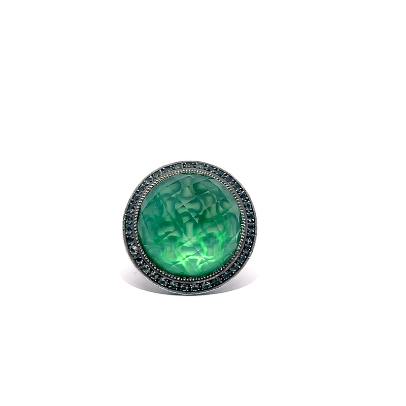 Alex Soldier handmakes his pieces with love in New York City, with inspiration by the magnificence of antiquity. This pre-owned ring is graced with an Agate and Quartz Doublet of 29-carat weight.