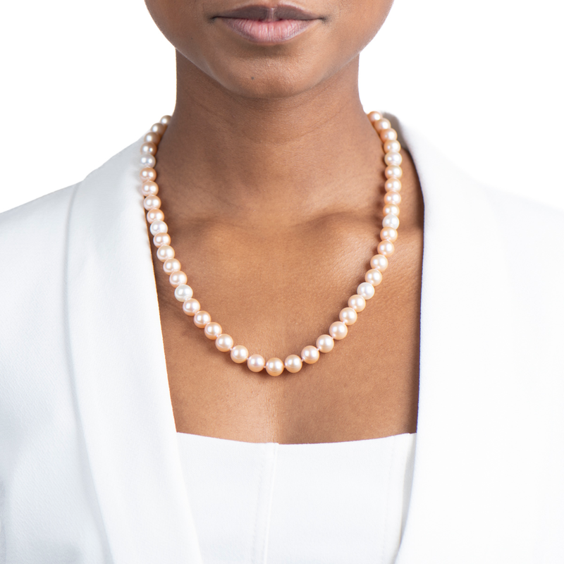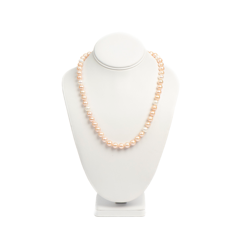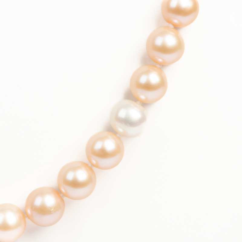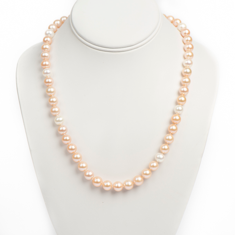 • Main Stone: Pearl, Quantity; 53, Size; 8.75mm to 9.50mm, Color; Pink/Rose, Color/Type: Freshwater, Shape: Round