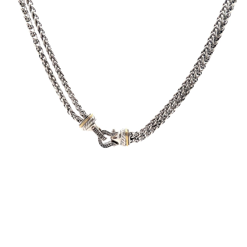 Pre-Owned David Yurman Diamond Buckle Double Wheat Chain Necklace